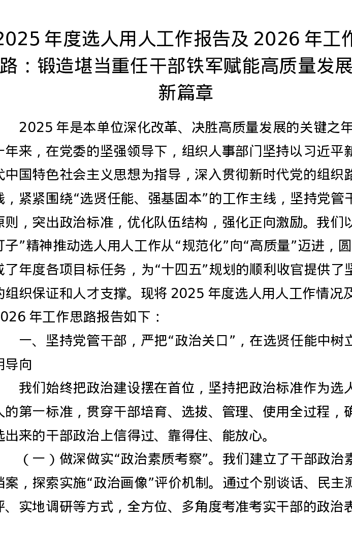 2025年度选人用人工作报告及2026年工作思路:锻造堪当重任干部铁军 赋能高质量发展崭新篇章