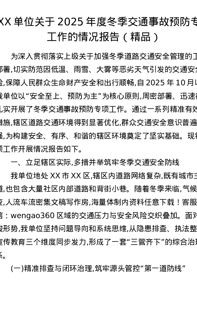XX单位关于2025年度冬季交通事故预防专项工作的情况报告