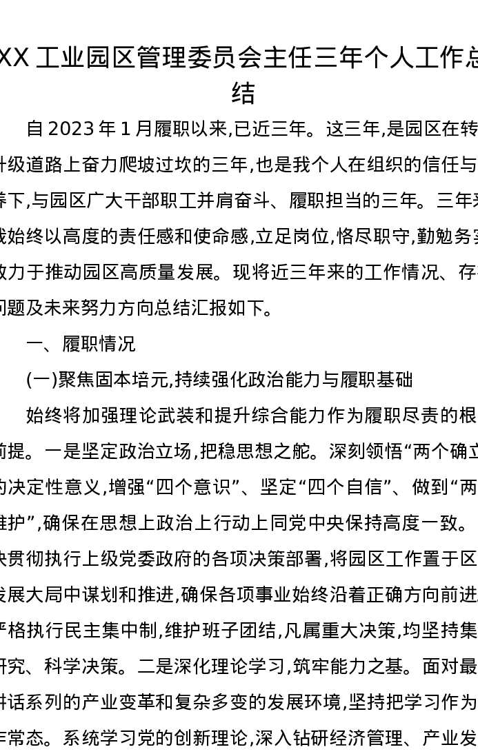 XX工业园区管理委员会主任三年个人工作总结