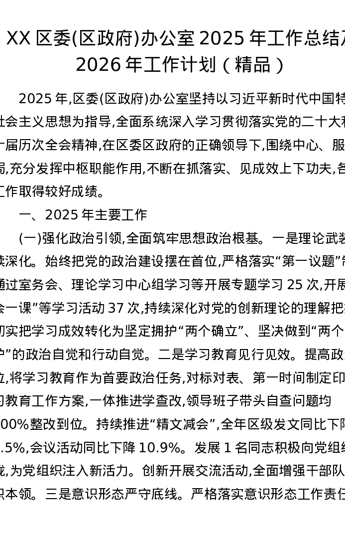 XX区委(区政府)办公室2025年工作总结及2026年工作计划