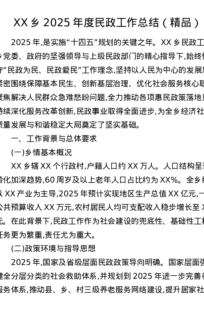 XX乡2025年度民政工作总结