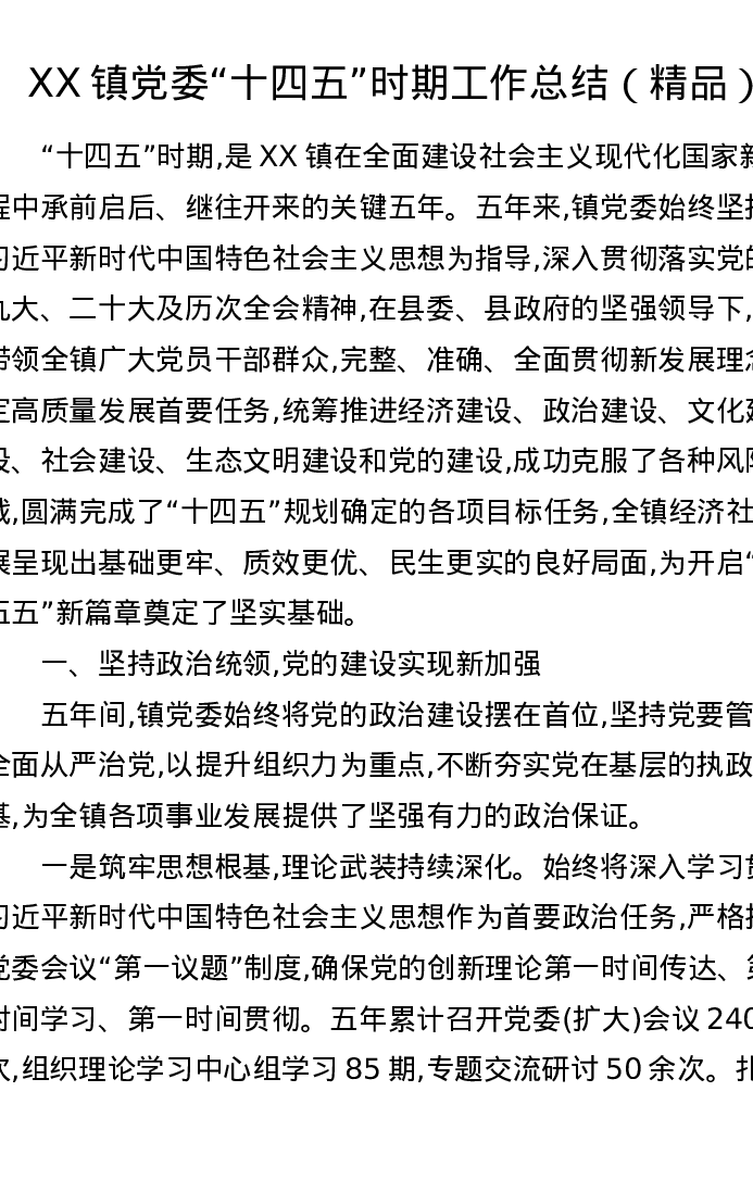 XX镇党委十四五时期工作总结