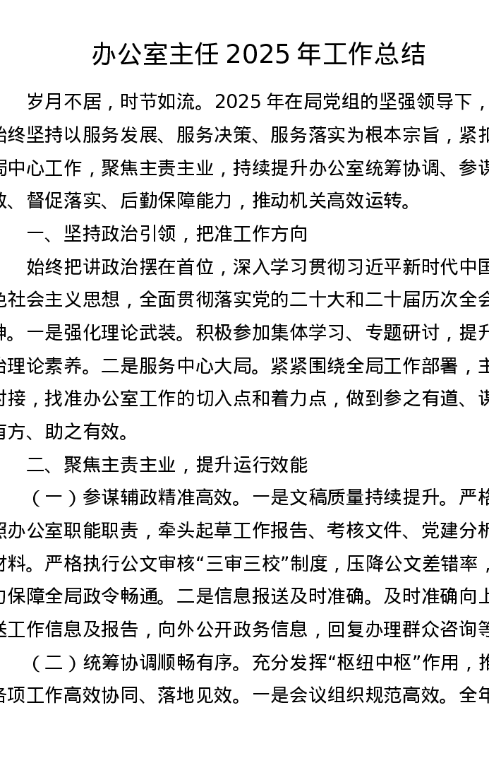 办公室主任2025年工作总结