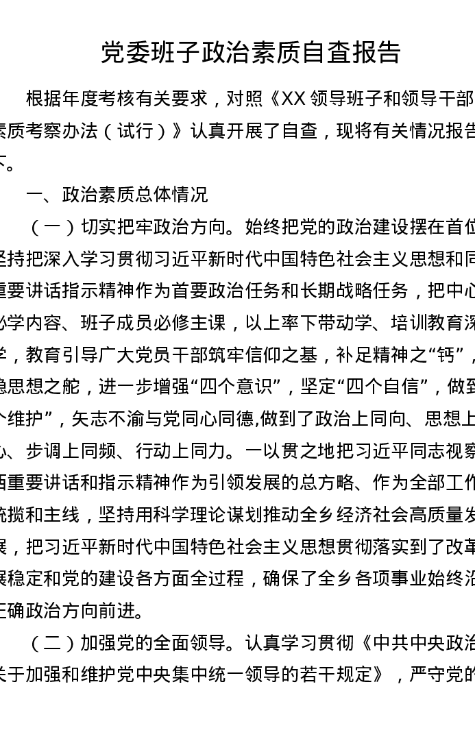 党委班子政治素质自査报告