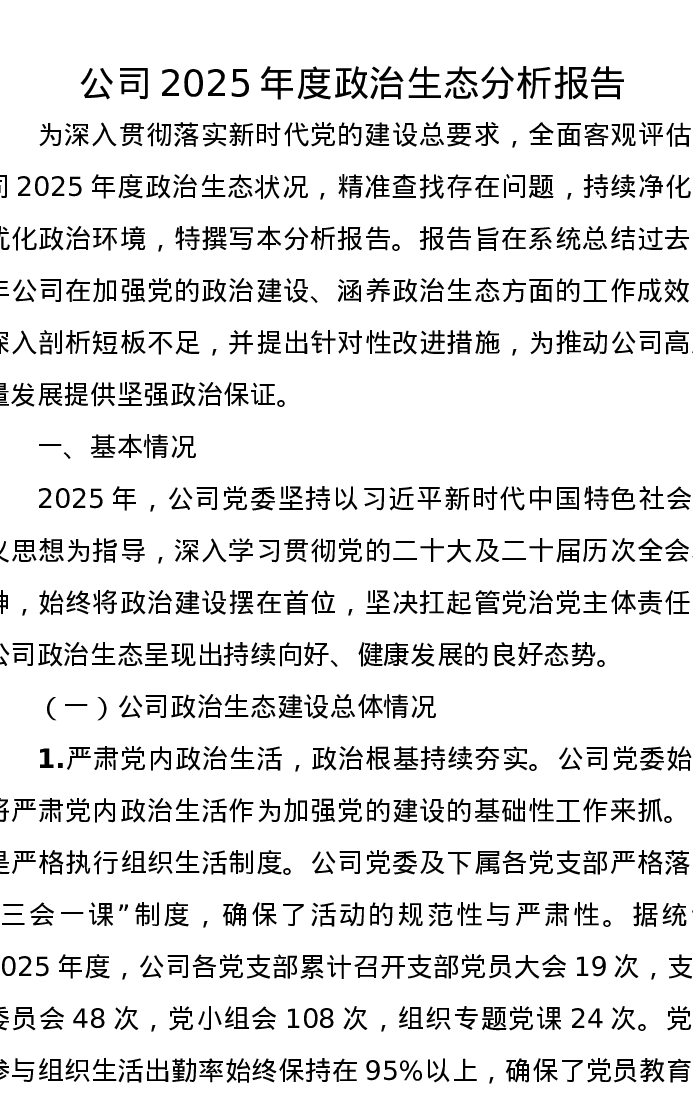 公司2025年度政治生态分析报告