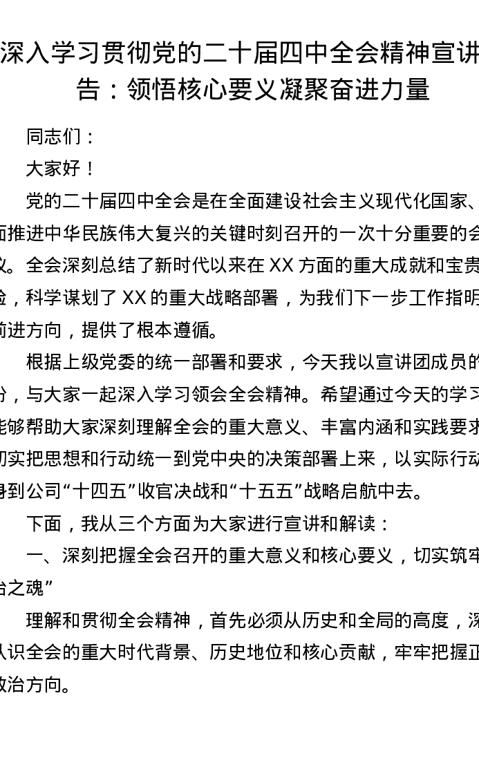 深入学习贯彻党的二十届四中全会精神宣讲报告:领悟核心要义 凝聚奋进力量