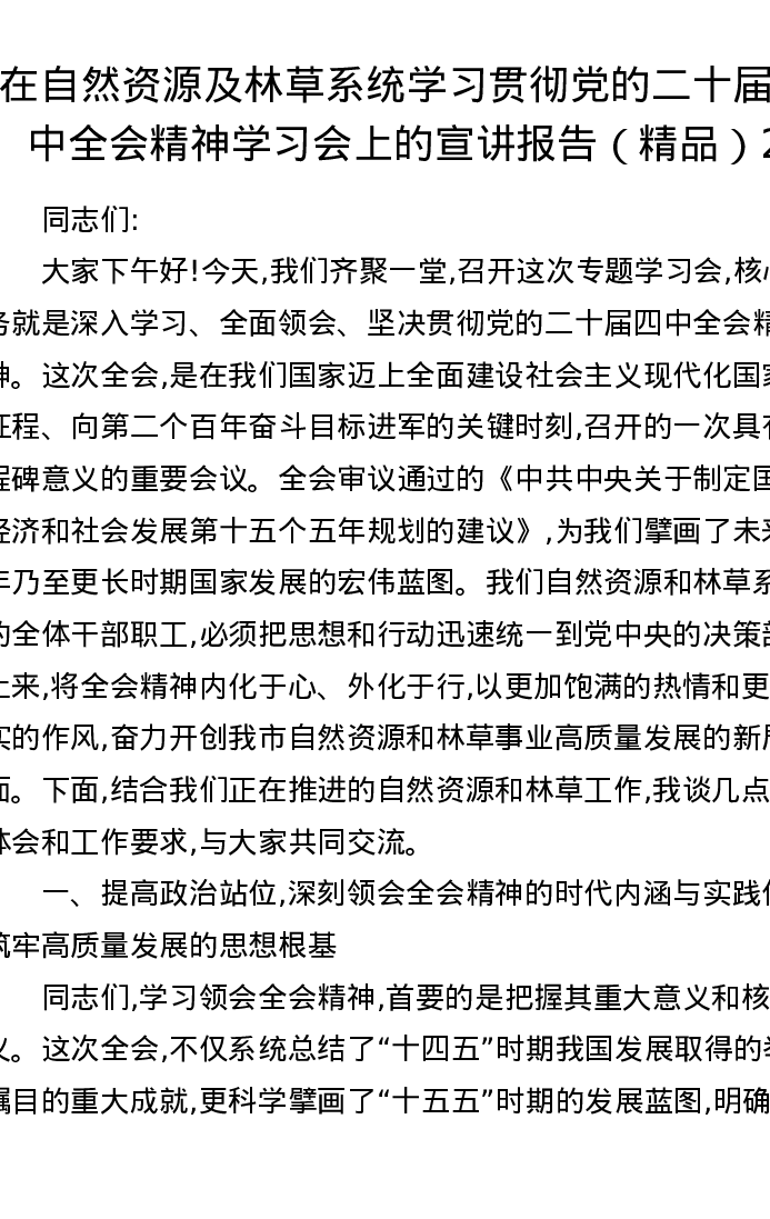 在自然资源及林草系统学习贯彻党的二十届四中全会精神学习会上的宣讲报告2
