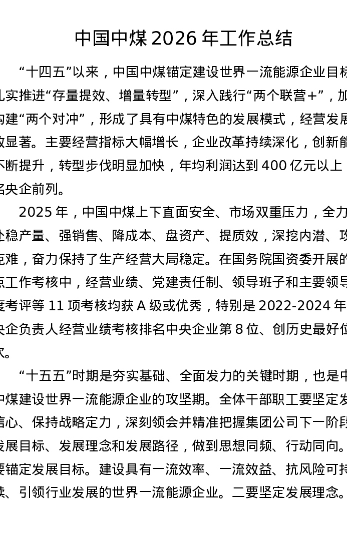 中国中煤2026年工作总结