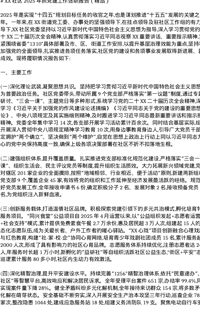 XX社区2025年抓党建工作述职报告