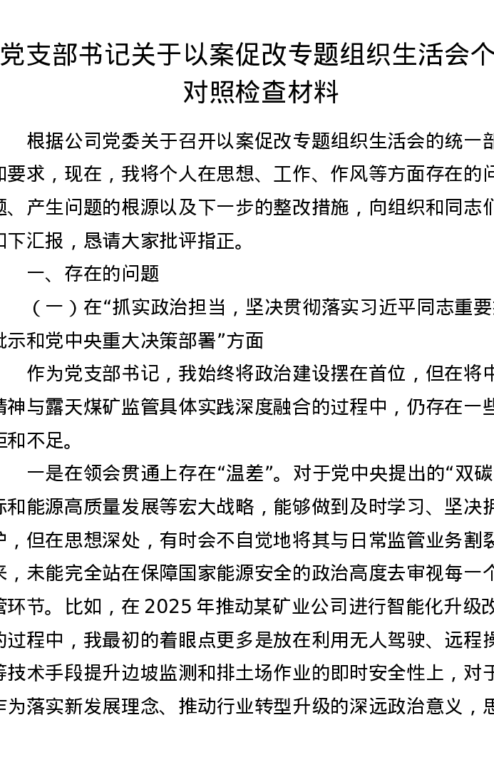 党支部书记关于以案促改专题组织xxx个人对照检查材料