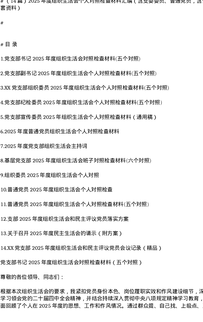 汇编:2025年度组织xxx个人对照检查材料汇编(含支委委员、普通党员,含全套资料)14篇
