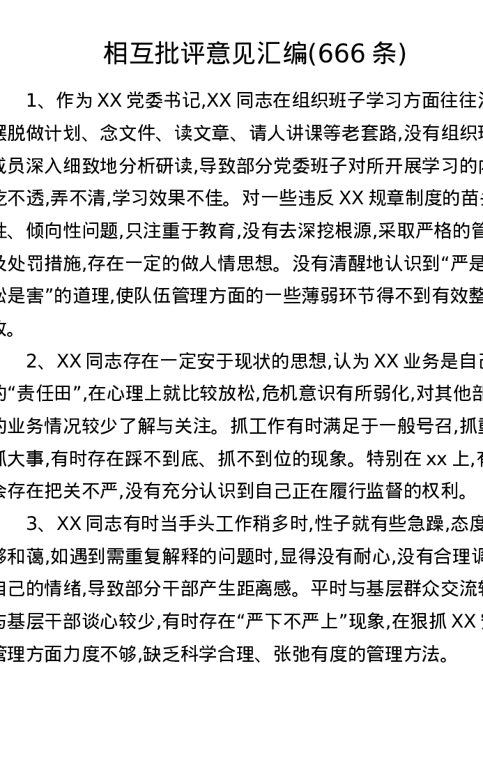 相互批评意见汇编(666条)