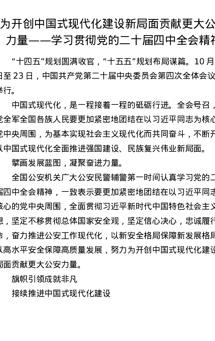 为开创中国式现代化建设新局面贡献更大公安力量——学习贯彻党的二十届四中全会精神