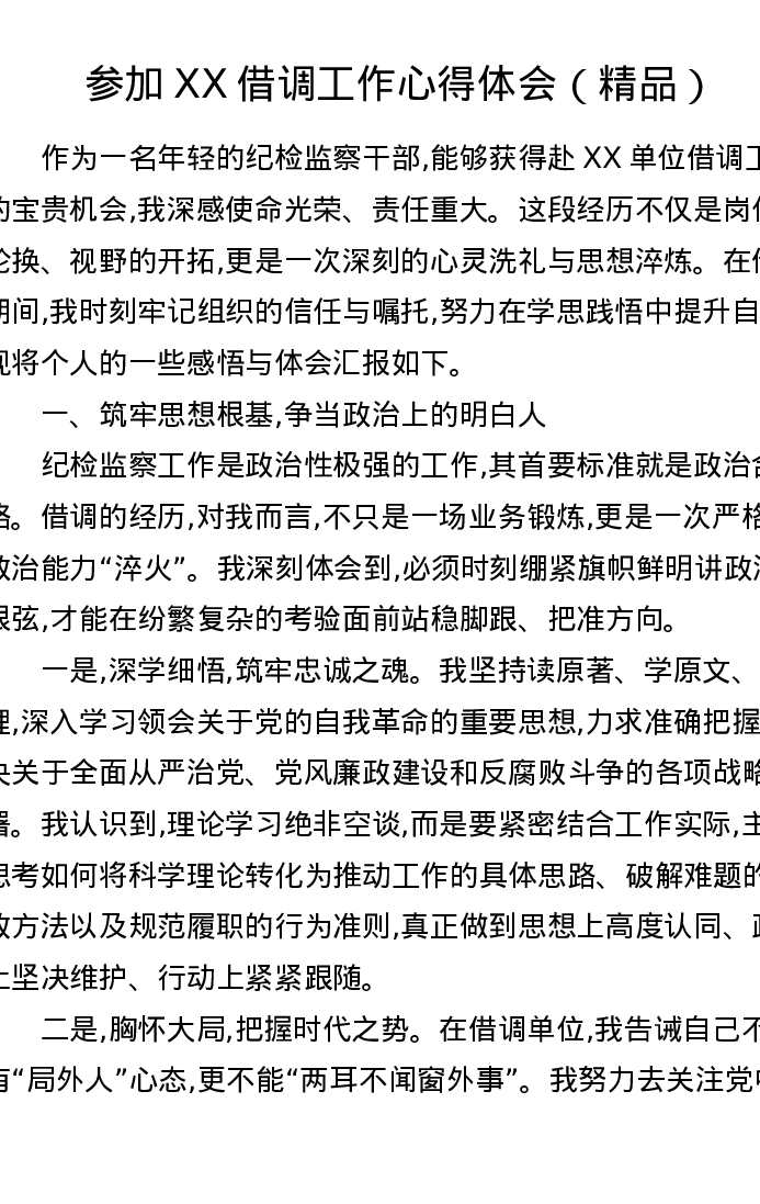 参加XX借调工作心得体会