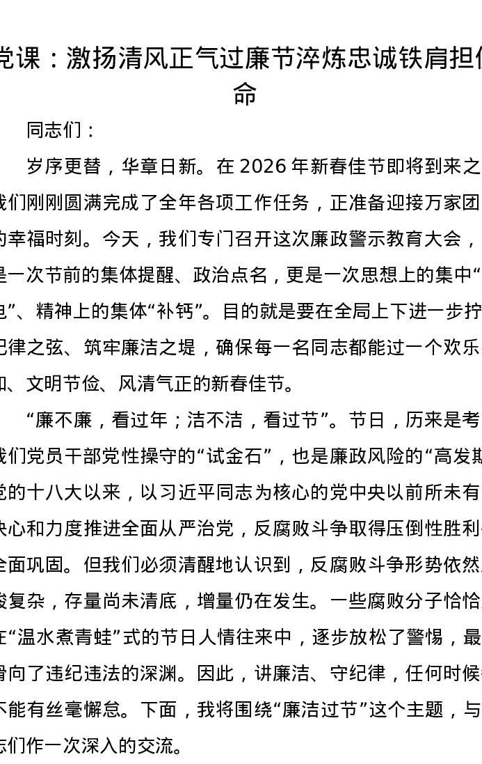 党课:激扬清风正气过廉节淬炼忠诚铁肩担使命