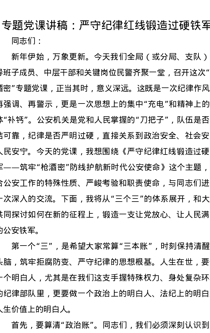 专题党课讲稿:严守纪律红线 锻造过硬铁军