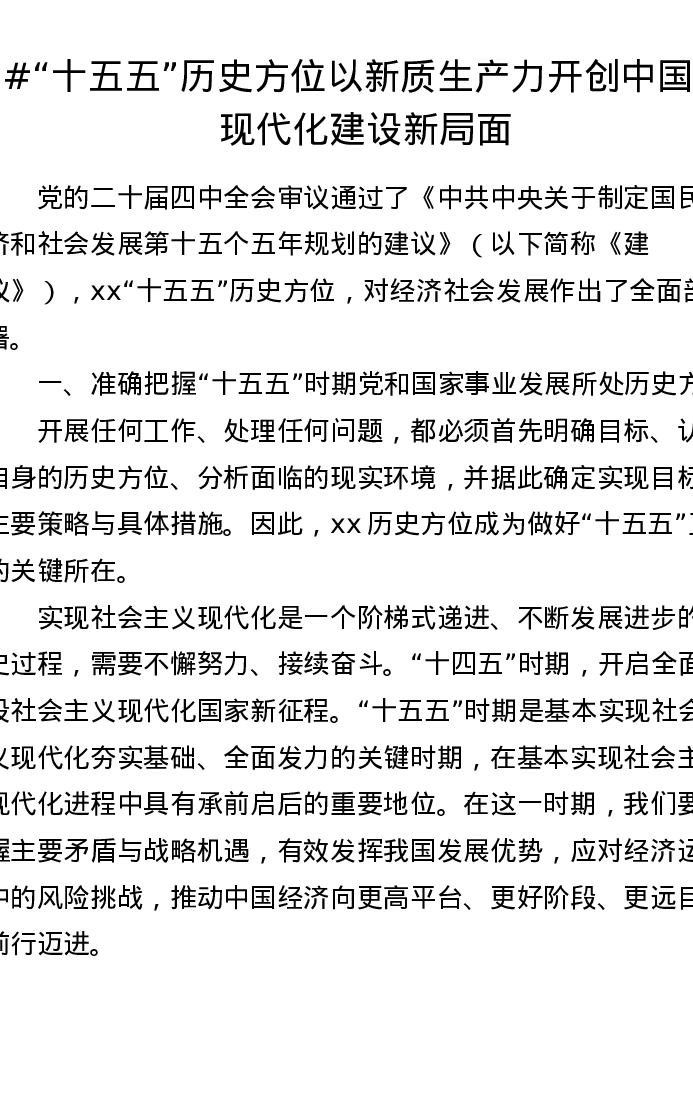讲话:十五五历史方位以新质生产力开创中国式现代化建设新局面