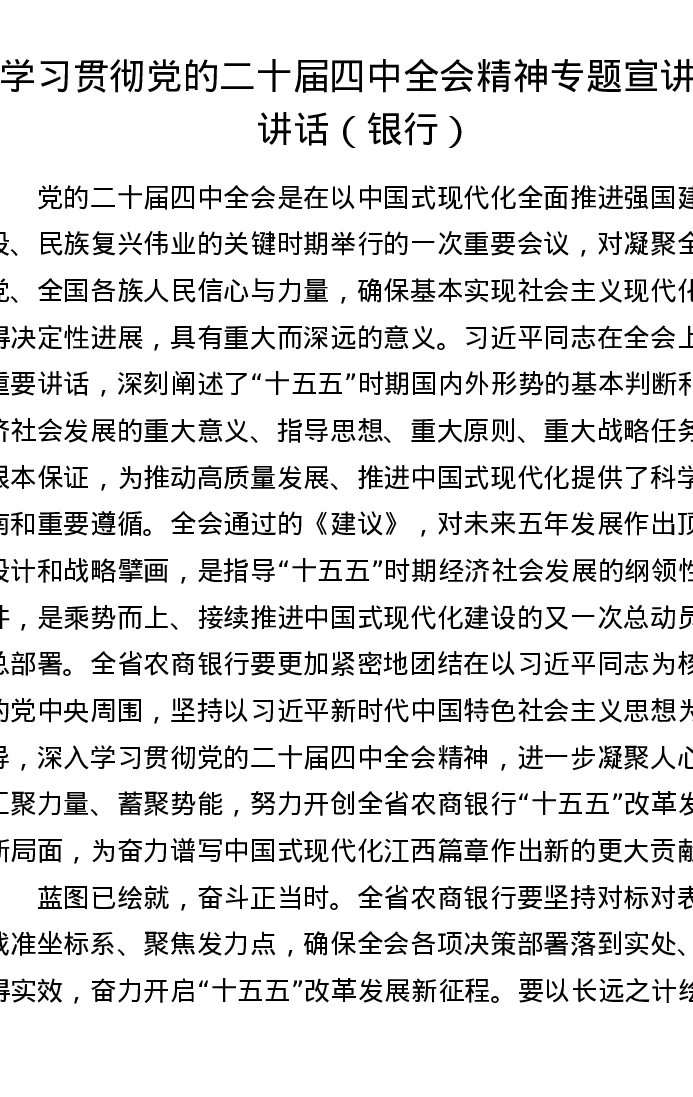 学习贯彻党的二十届四中全会精神专题宣讲会讲话(银行)