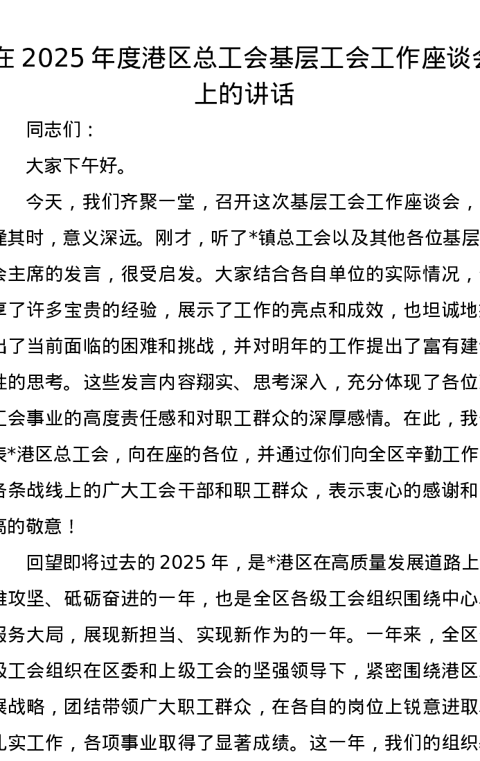 在2025年度港区总工会基层工会工作座谈会上的讲话