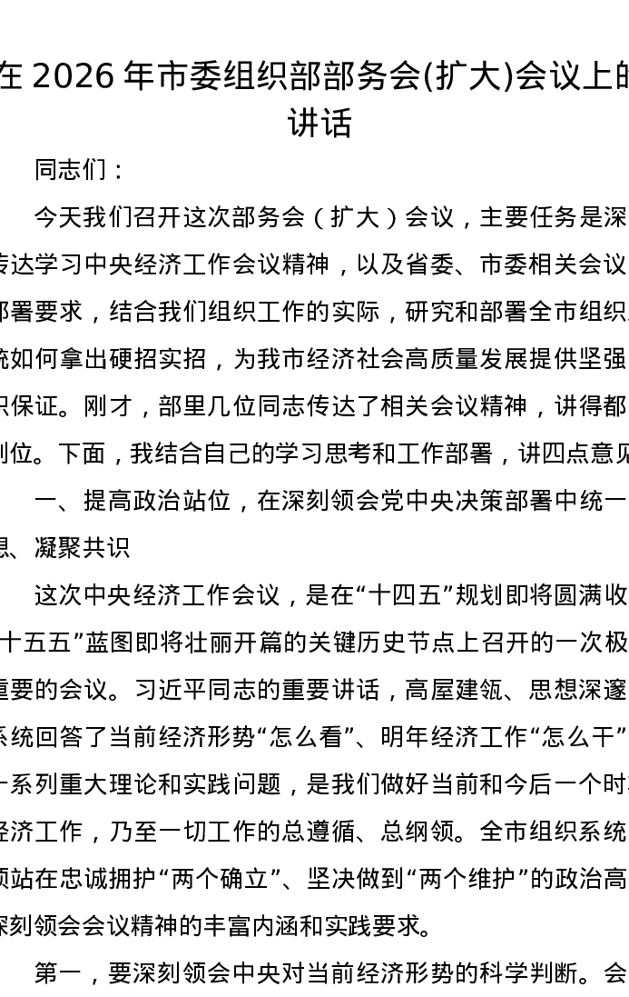 在2026年市委组织部部务会(扩大)会议上的讲话