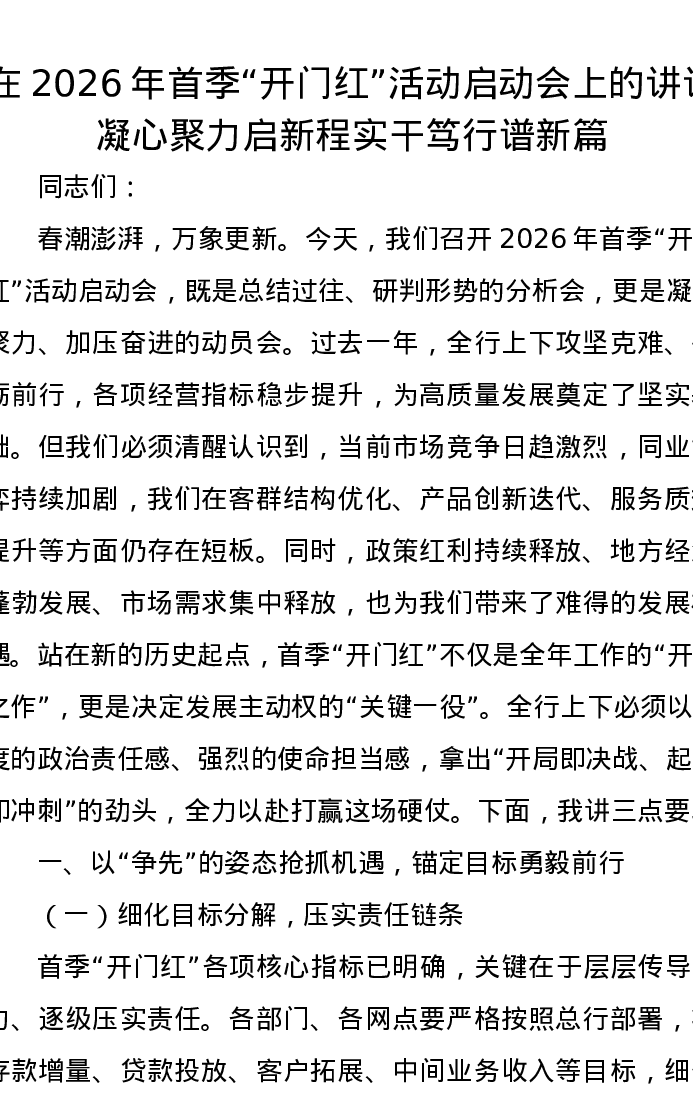 在2026年首季开门红活动启动会上的讲话:凝心聚力启新程 实干笃行谱新篇