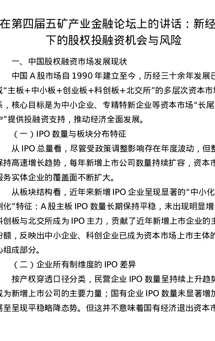 在第四届五矿产业金融论坛上的讲话:新经济下的股权投融资机会与风险