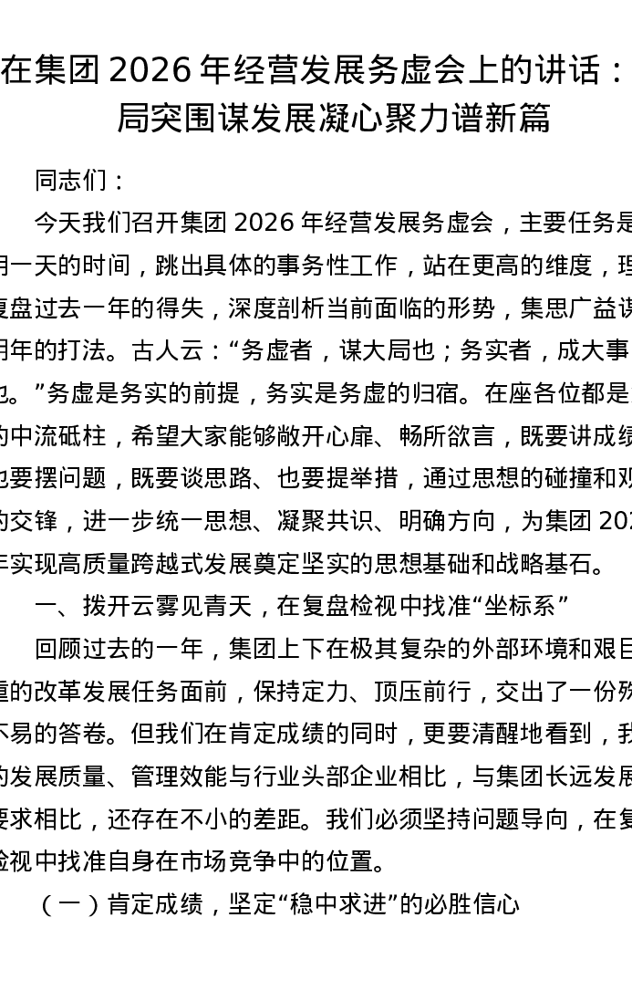 在集团2026年经营发展务虚会上的讲话:破局突围谋发展 凝心聚力谱新篇