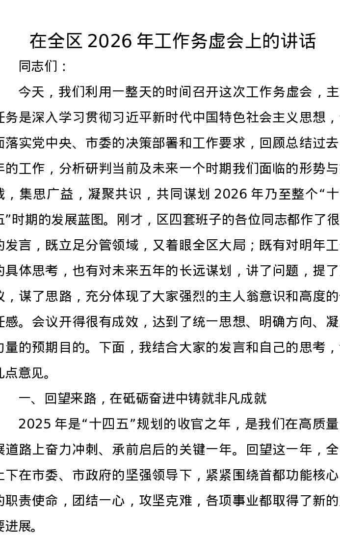 在全区2026年工作务虚会上的讲话