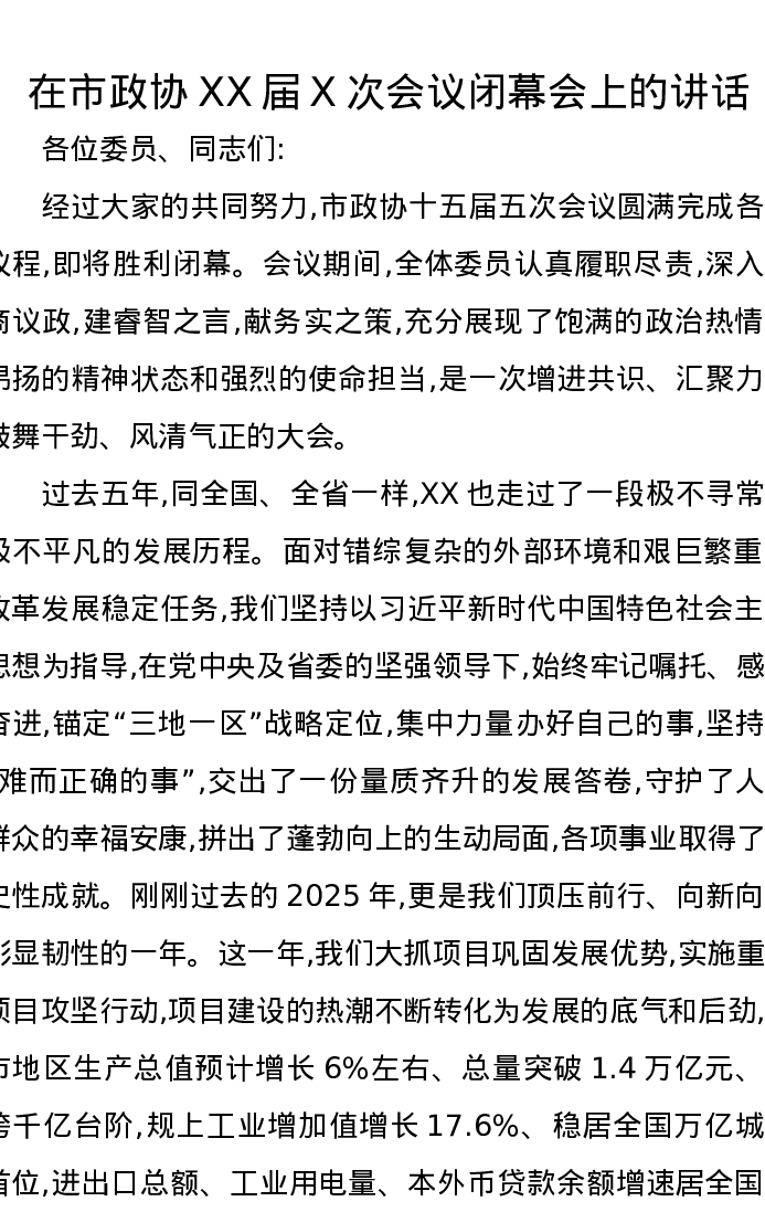 在市政协XX届X次会议闭幕会上的讲话