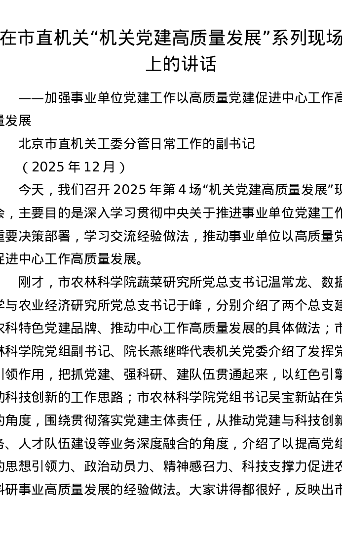 在市直机关机关党建高质量发展系列现场会上的讲话