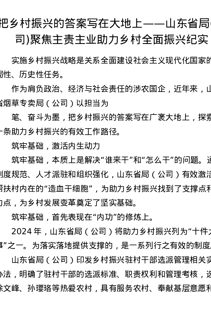 把乡村振兴的答案写在大地上——山东省局(公司)聚焦主责主业助力乡村全面振兴纪实