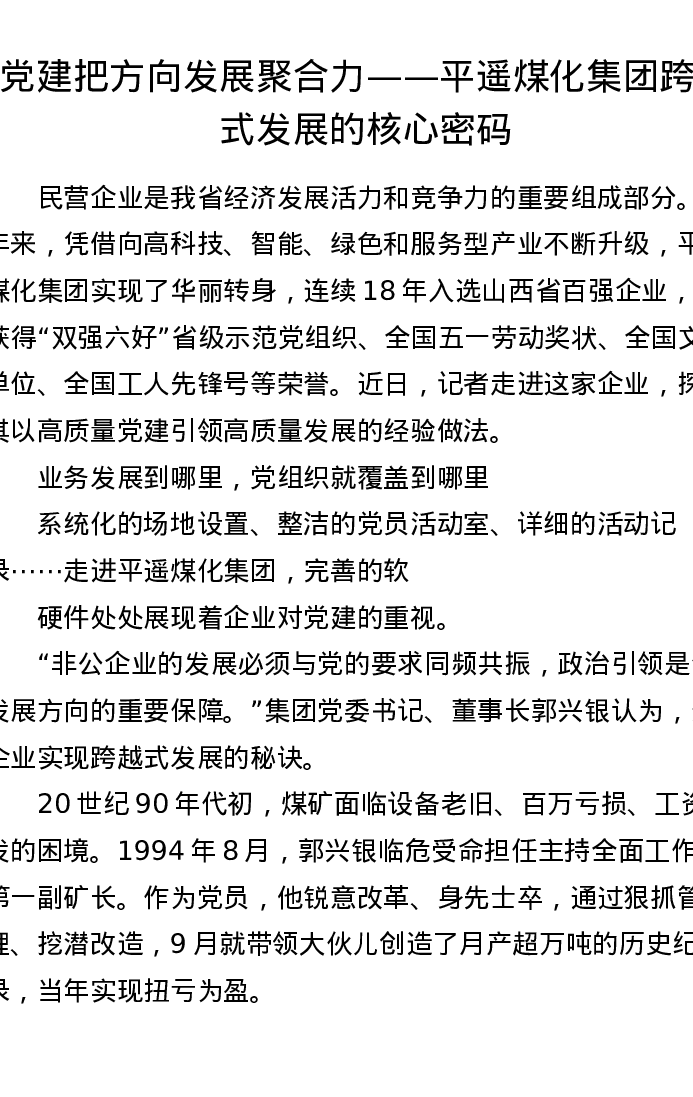 党建把方向 发展聚合力——平遥煤化集团跨越式发展的核心密码