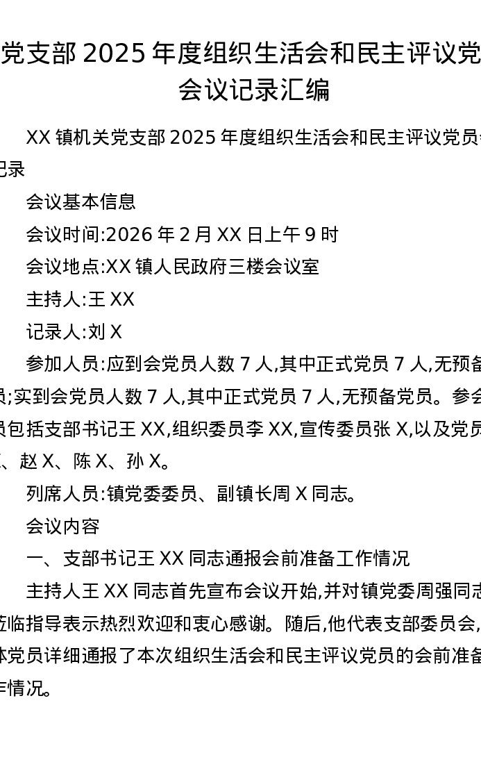 党支部2025年度组织xxx和民主评议党员会议记录汇编