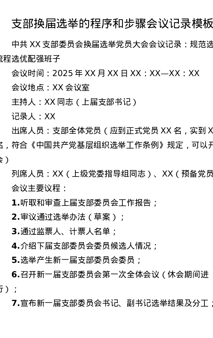 支部换届选举的程序和步骤会议记录模板
