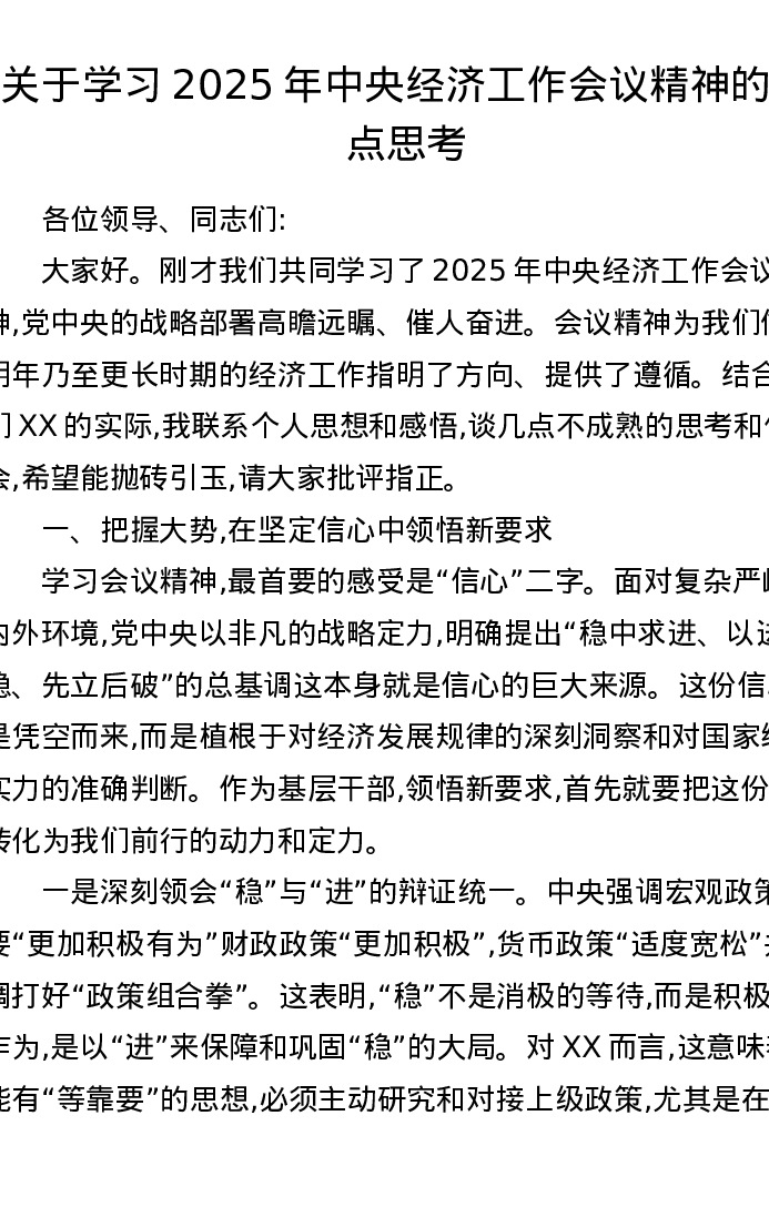 关于学习2025年中央经济工作会议精神的几点思考