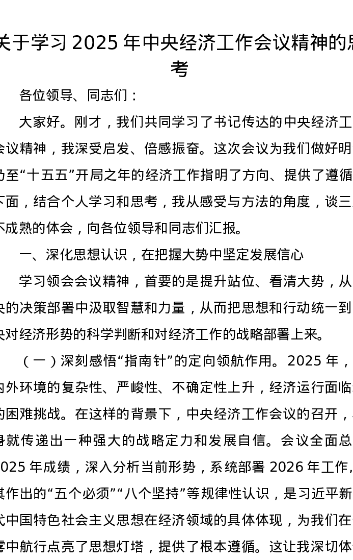 关于学习2025年中央经济工作会议精神的思考