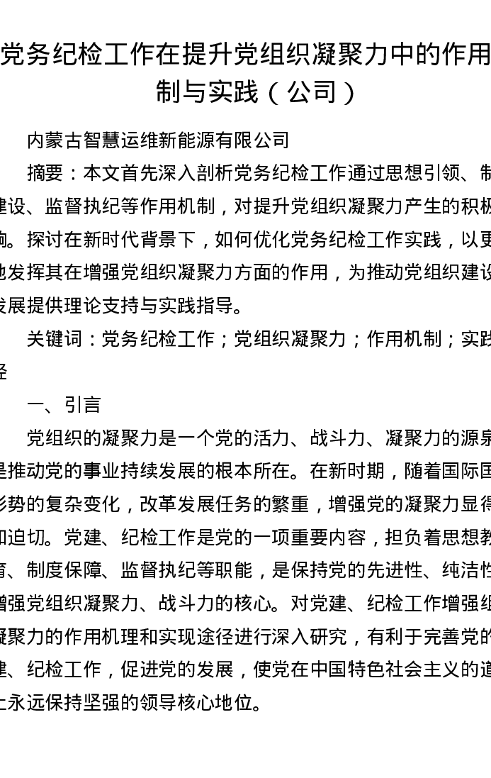 调研报告:党务纪检工作在提升党组织凝聚力中的作用机制与实践(公司)
