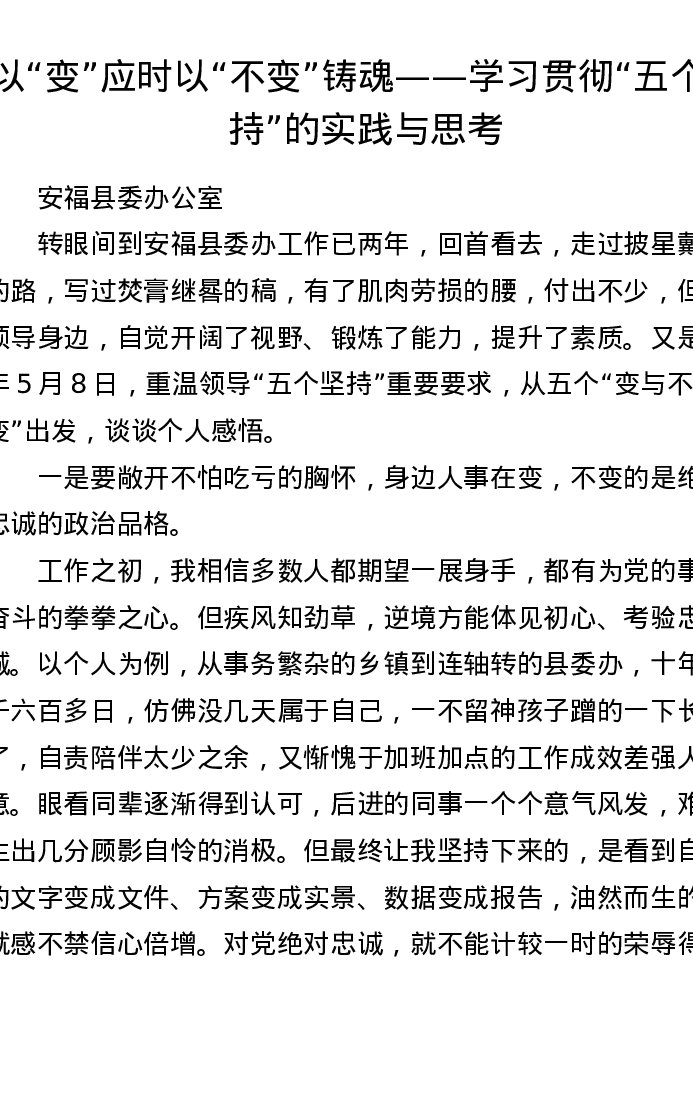调研报告:以变应时 以不变铸魂——学习贯彻五个坚持的实践与思考