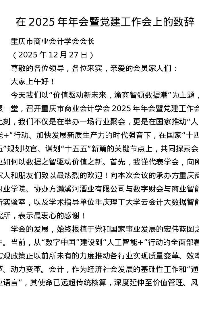 在2025年年会暨党建工作会上的致辞