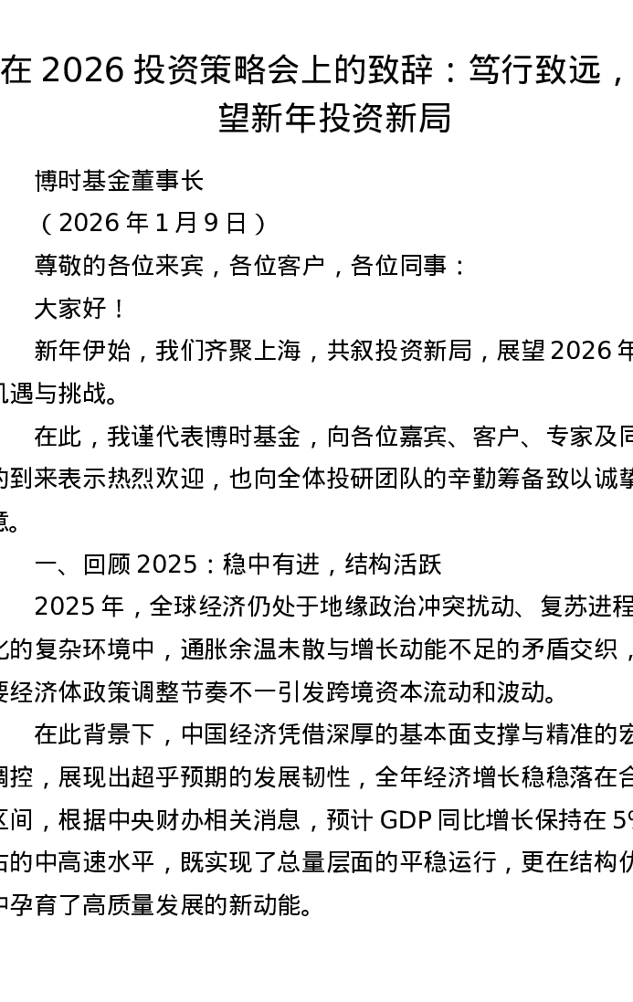 在2026投资策略会上的致辞:笃行致远,展望新年投资新局