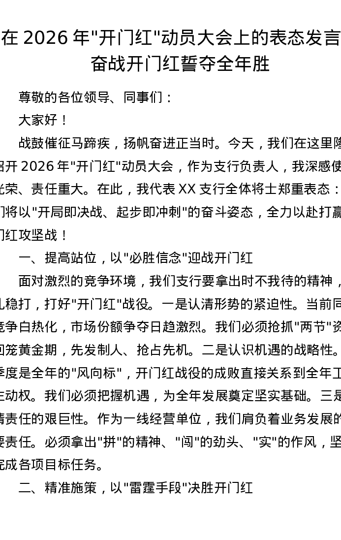 在2026年开门红动员大会上的表态发言:奋战开门红 誓夺全年胜
