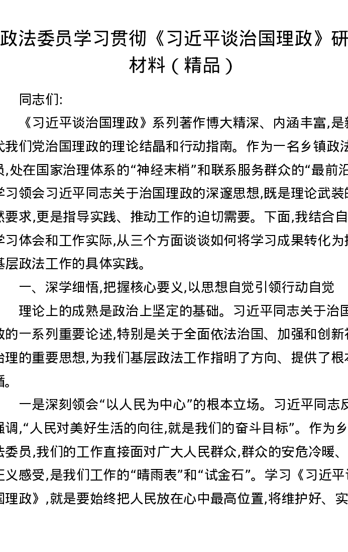 政法委员学习贯彻《习近平谈治国理政》研讨发言材料