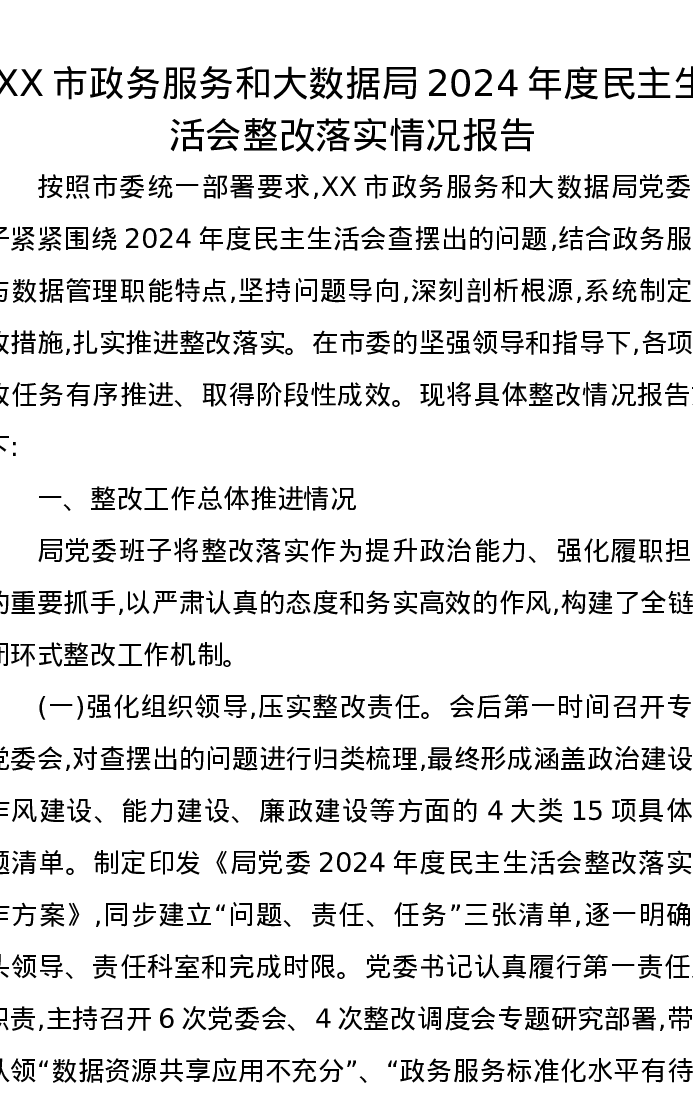 XX市政务服务和大数据局2024年度xxxxx整改落实情况报告