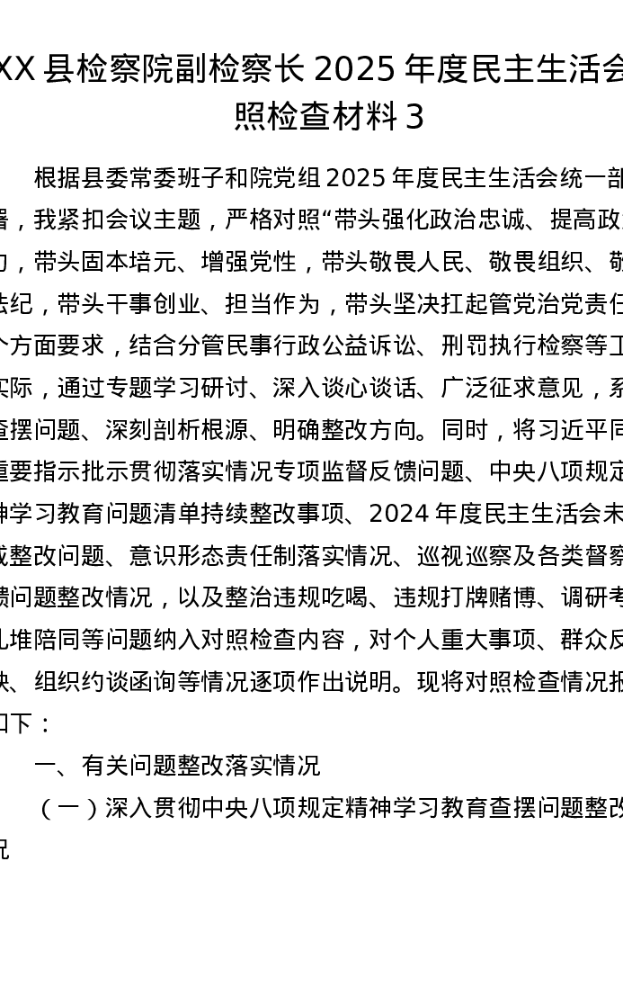 XX县检察院副检察长2025年度xxxxx对照检查材料3