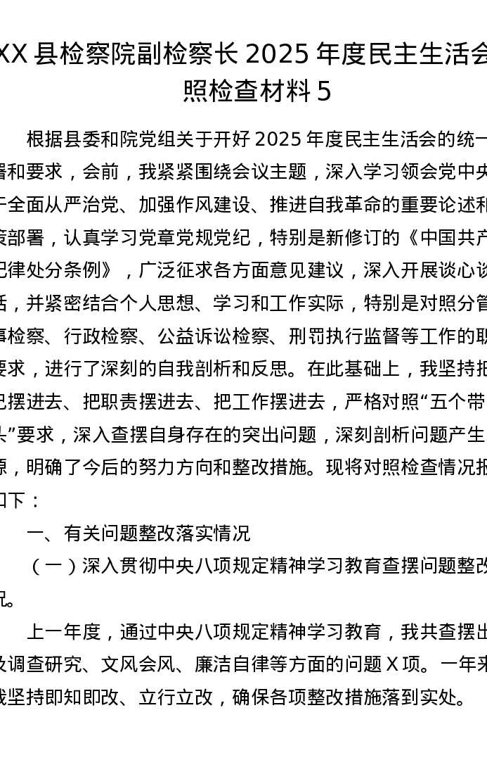 XX县检察院副检察长2025年度xxxxx对照检查材料5