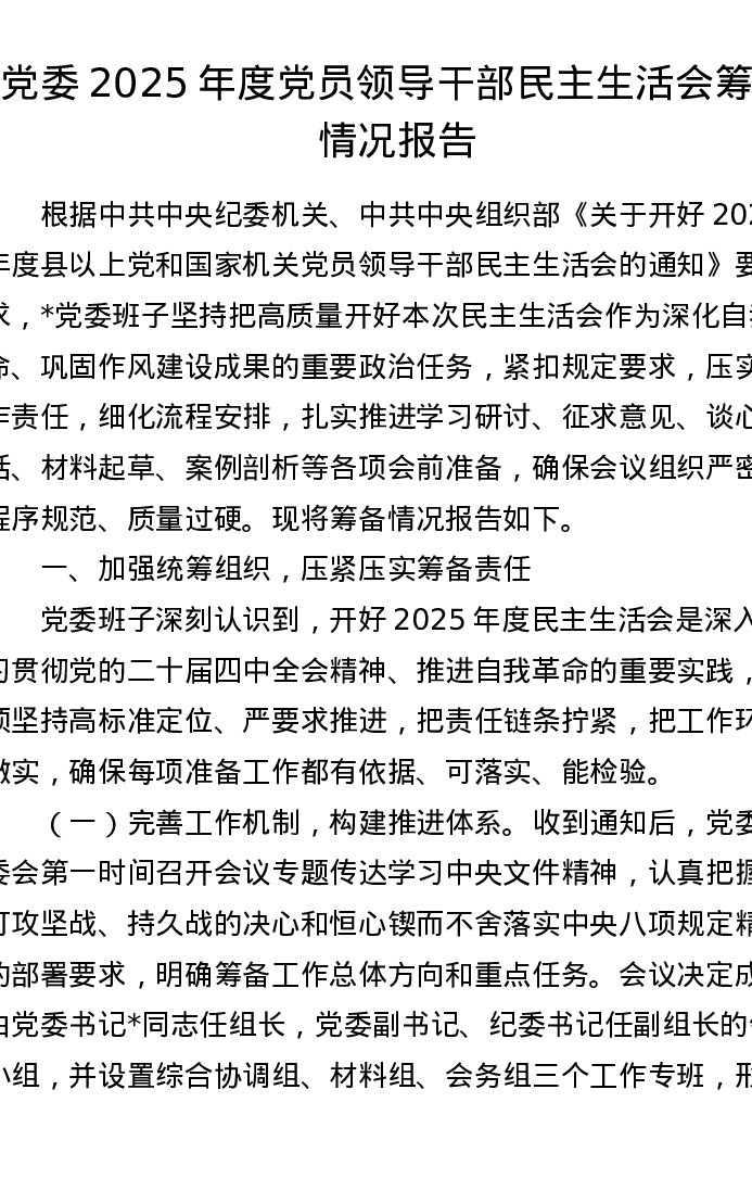 党委2025年度党员领导干部xxxxx筹备情况报告
