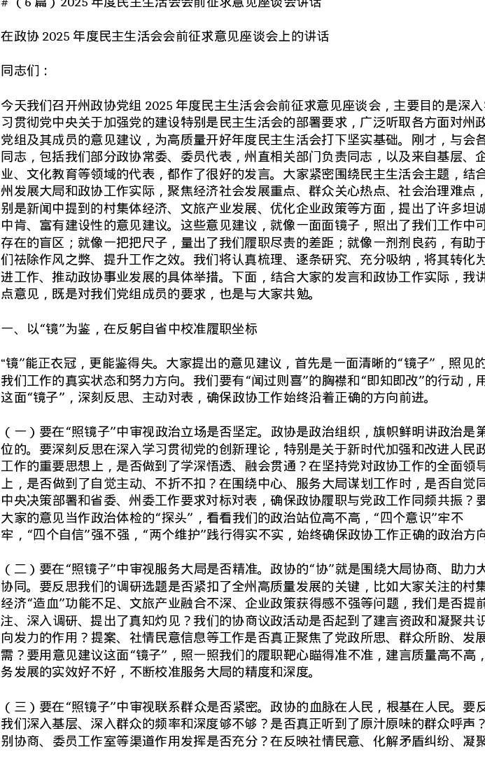 汇编:2025年度xxxxx会前征求意见座谈会讲话6篇