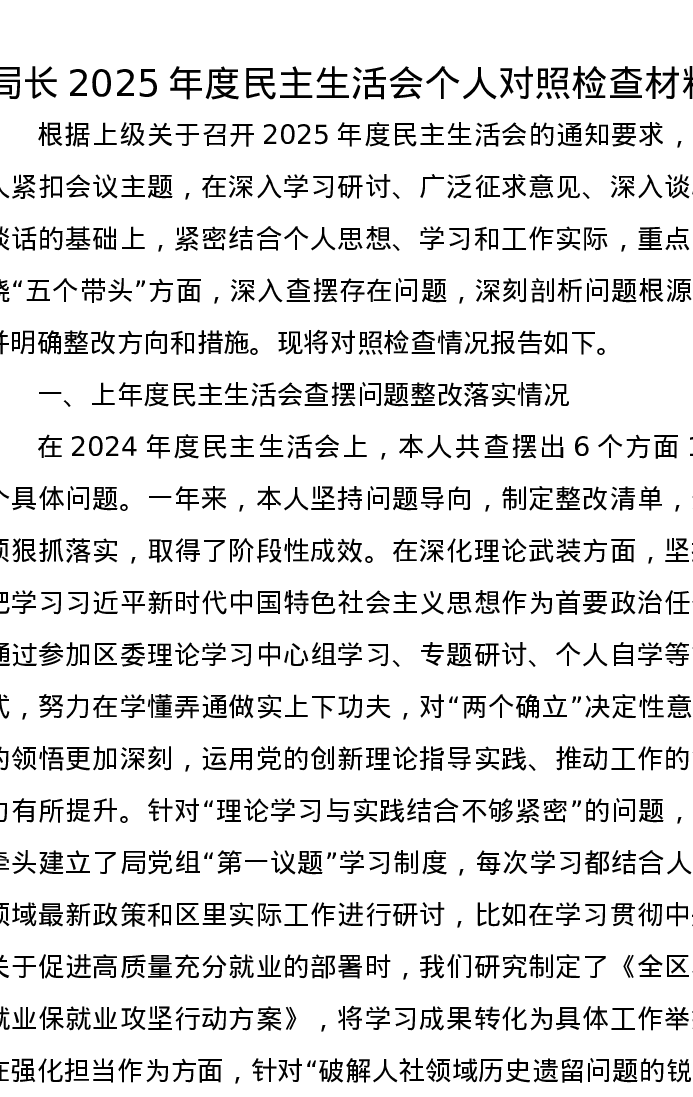 局长2025年度xxxxx个人对照检查材料