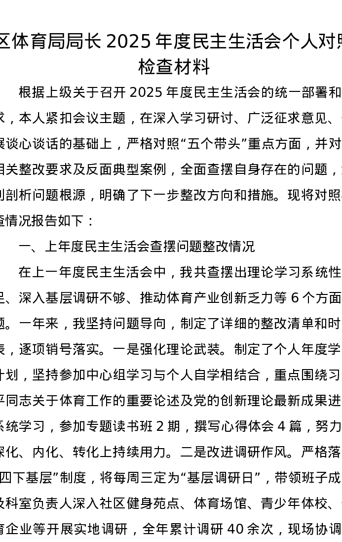 区体育局局长2025年度xxxxx个人对照检查材料
