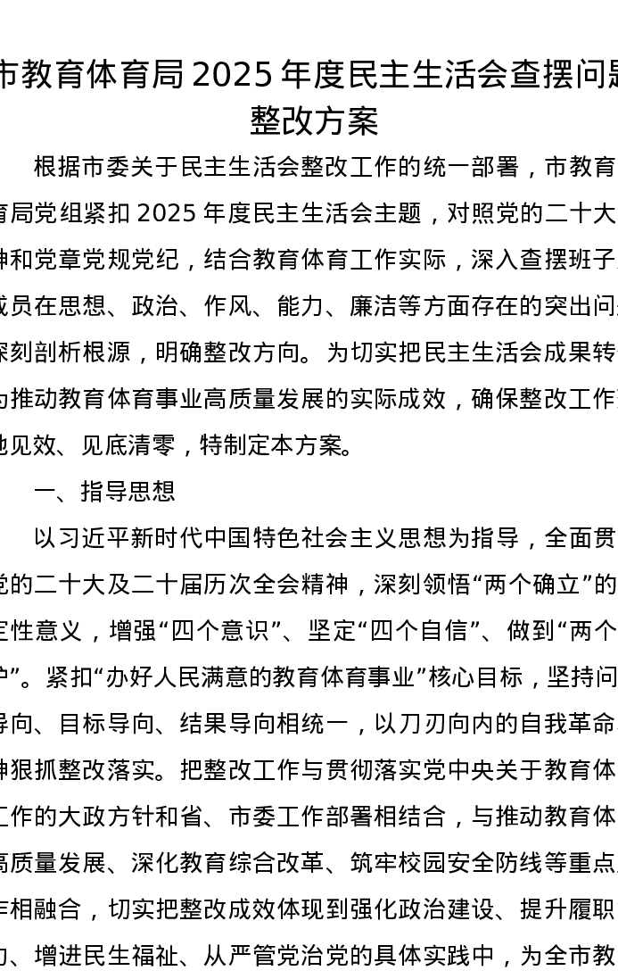 市教育体育局2025年度xxxxx查摆问题整改方案